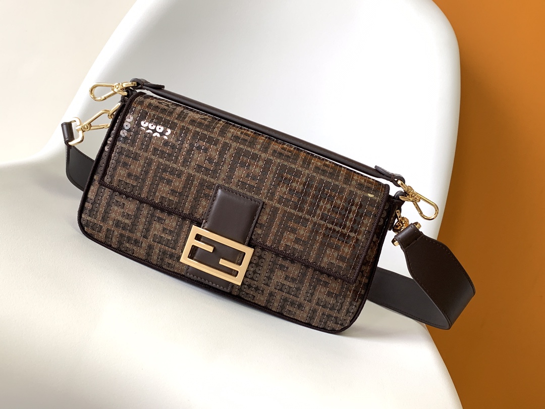 Brown FF jacquard fabric bag with sequins