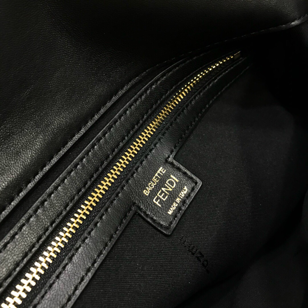 Luxurious and Spacious: Discover Our Baguette Large Black Fendi-Pattern Replica Bag
