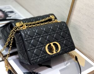 - Adjustable, removable CD chain link strap with Christian Dior military-inspired buckle