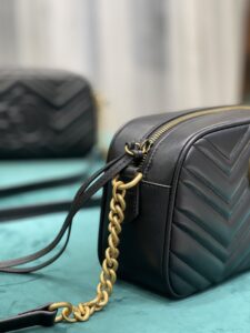 • Adjustable chain shoulder strap with 23.6″ drop. Can also be worn as a crossbody bag.