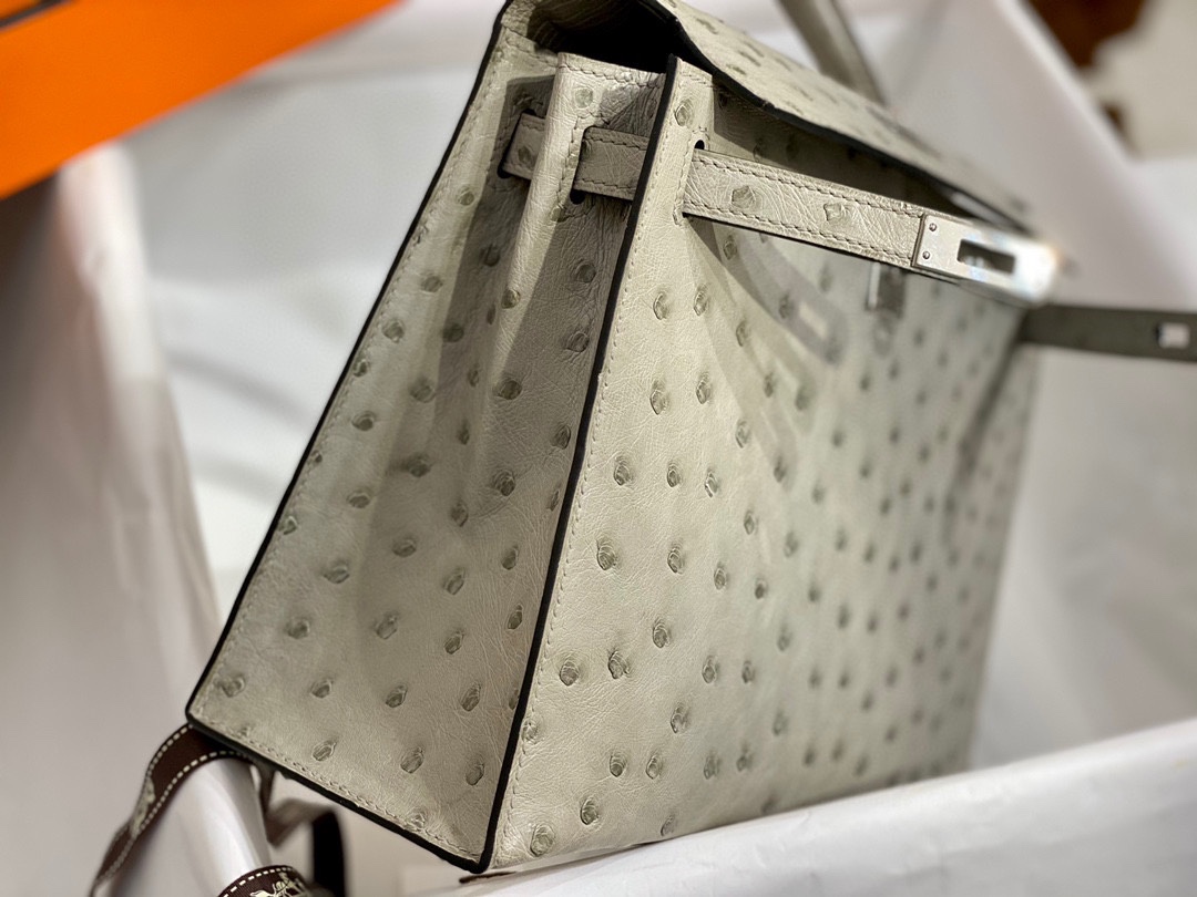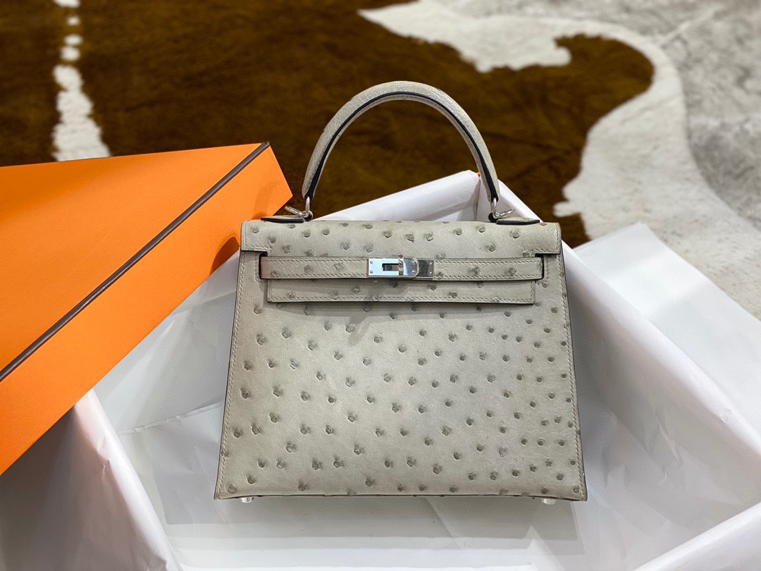 Kelly 25cm Ostrich Hand Stitched Handbag