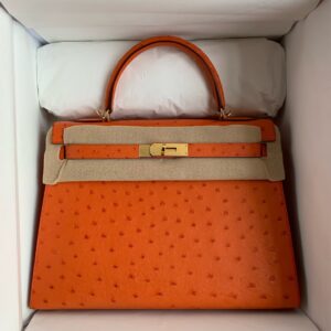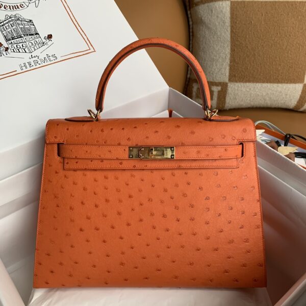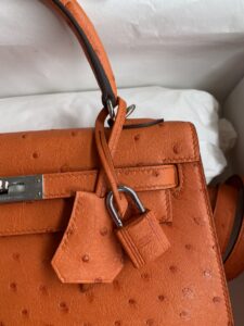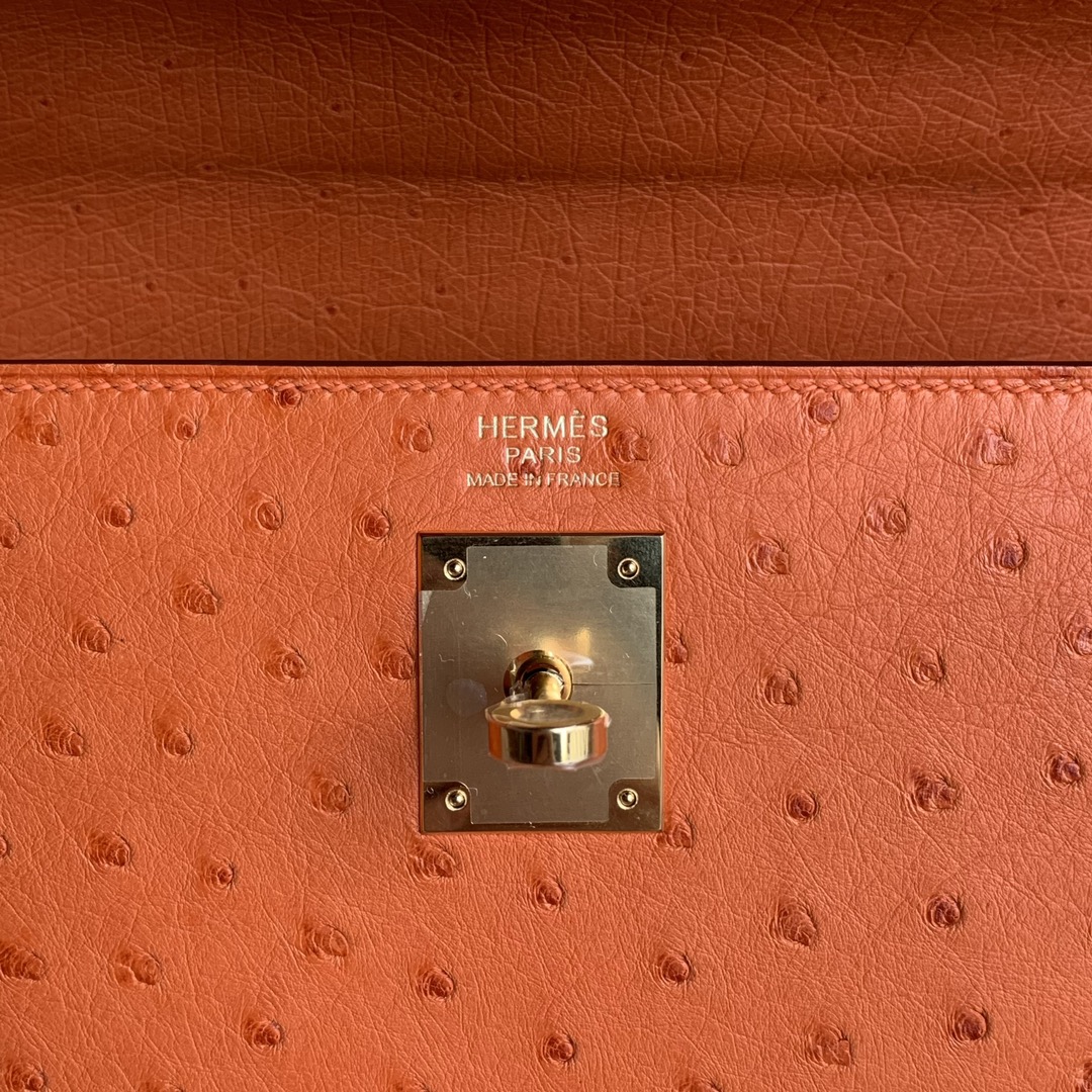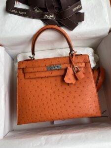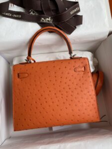 Kelly 25cm Ostrich Hand Stitched Handbag