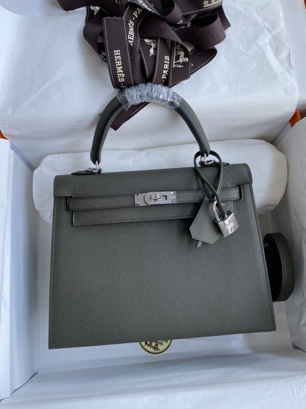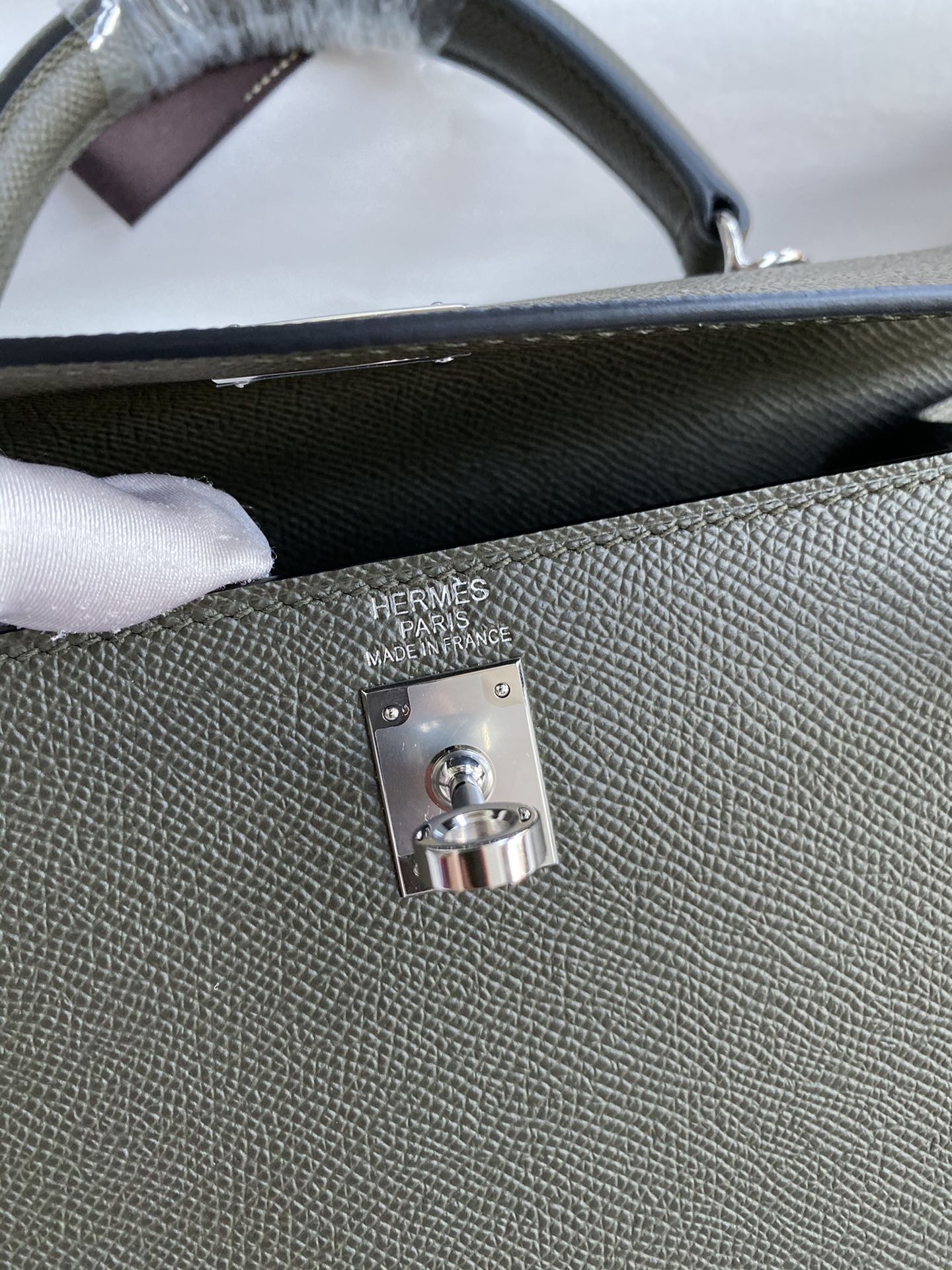 Kelly Bag 25cm Hand Stitched Silver Hardware Epsom