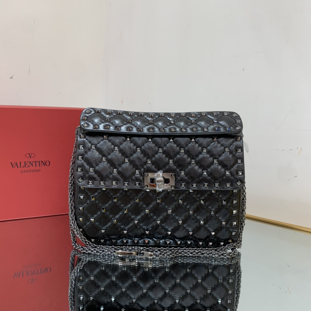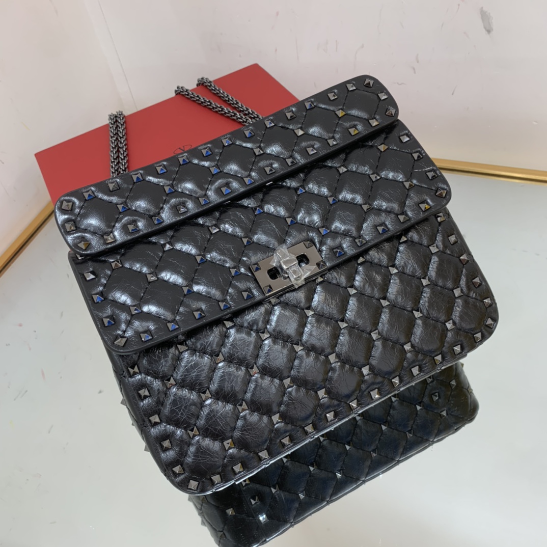 The Nappa Rockstud Spike Bag is made from top-quality Nappa leather, renowned for its smooth texture and exceptional durability. This luxurious material ensures the bag’s longevity and gives it a sophisticated look and feel.